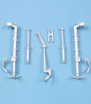 We manufacture a line of white metal landing gear for 1/18 to 1/144 scale aircraft. Some Sets consist of the main gear only while others include the nose gear, tail gear and/or adjacent related components. Some inaccuracies in the original kit gear have been corrected